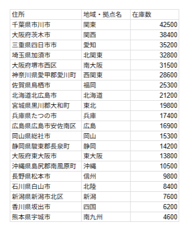 地図の下に「拠点名・住所・正確な在庫数」を記した表を配置。全体像(地図)から詳細(表)へ、視線をスムーズに誘導するUX(ユーザー体験)を設計しました。